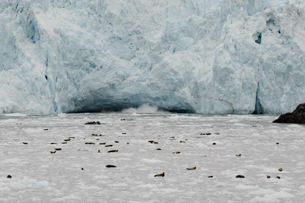 H + T saved their big adventure for the next morning. They hopped on a wildlife cruise through the fjords to see towering glaciers, open water, and so many marine animals. Whether your version of adventure is a helicopter tour, a boat trip, or simply wandering through wildlife, Alaska gives you the freedom to build an elopement day that feels big, small, quiet, thrilling, or a mix of all of it. Check out this Alaska glacier elopement!